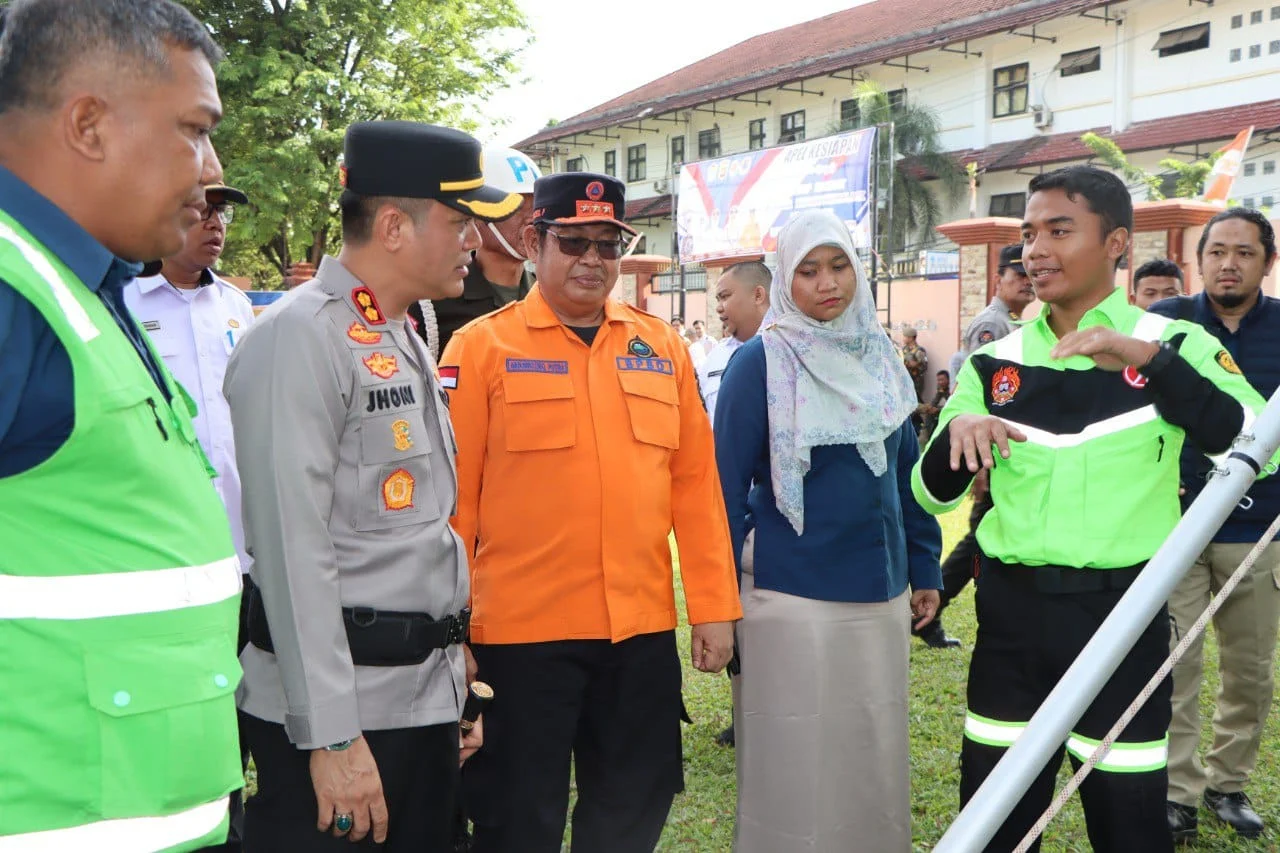 Muara Enim, Tipikorinvestigasi.id – Dalam rangka meningkatkan kesiapsiagaan menghadapi potensi bencana alam akibat cuaca ekstrem, Polres Muara Enim bersama unsur Forkopimda dan stakeholder terkait menggelar Apel Bersama Siaga Personil dan Peralatan Tanggap Darurat Bencana Hidrometeorologi Tahun 2025. Kegiatan berlangsung di Lapangan Apel Polres Muara Enim, Rabu (5/11) pukul 08.00 WIB dan diikuti oleh berbagai elemen pemerintah, TNI, Polri, BPBD, serta perusahaan swasta di wilayah Kabupaten Muara Enim.