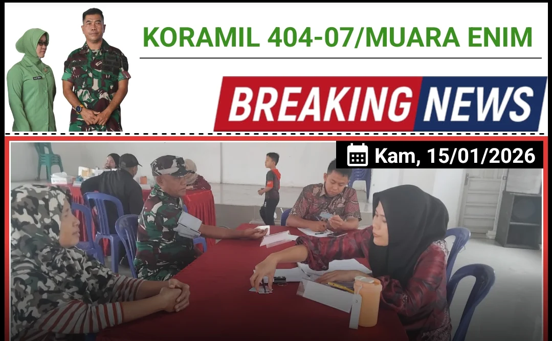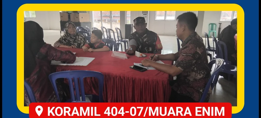 MUARA ENIM, Tipikorinvestigasi.id – Pelda Supriyadi, Babinsa Koramil 404-07/Muara Enim bawah naungan Kodim 0404/Muara Enim, melakukan pemantauan terhadap kegiatan pengobatan gratis yang diselenggarakan oleh tim Corporate Social Responsibility (CSR) PT Bukit Asam Tbk (PTBA) bekerja sama dengan rumah sakit dan klinik terkait pada Kamis (15/01/2026).