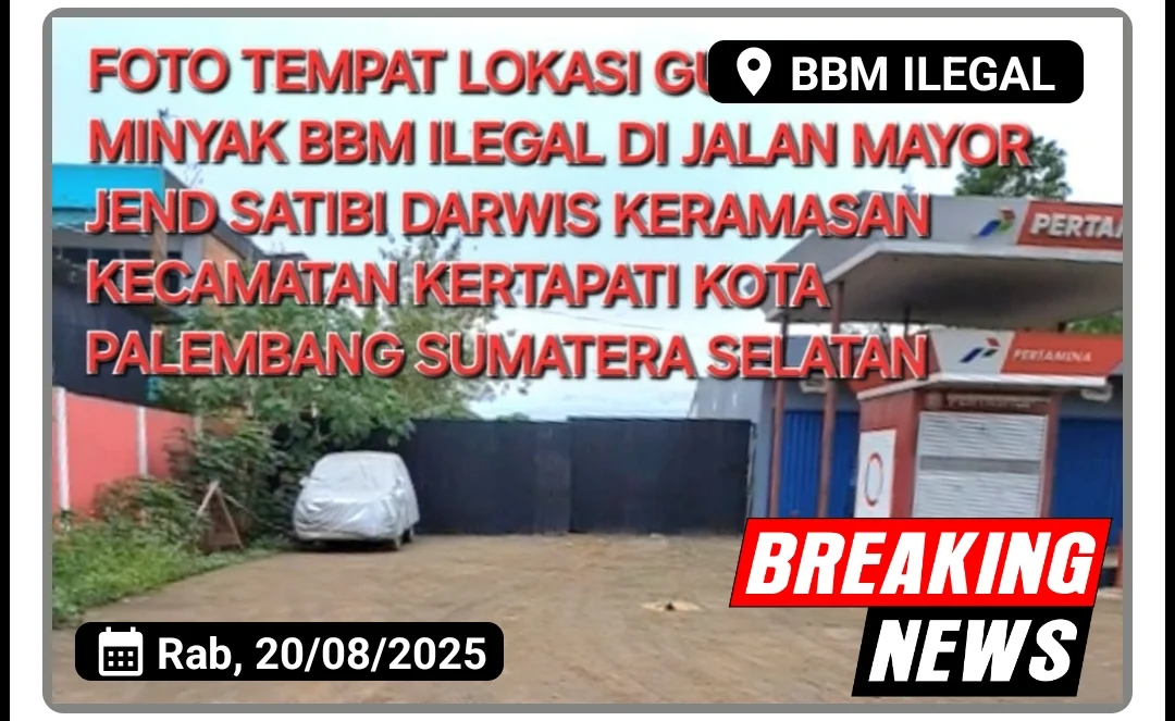 Palembang, Tipikorinvestigasi.id – Sebuah bekas Pertashop/SPBU mini di Jl. Mayor Jend. Satibi Darwis, Keramasan, Kertapati, Palembang, diduga menjadi tempat penimbunan BBM ilegal. Dugaan ini muncul berdasarkan temuan wartawan investigasi pada Selasa, (19/08/2025) pukul 09.00 WIB.
