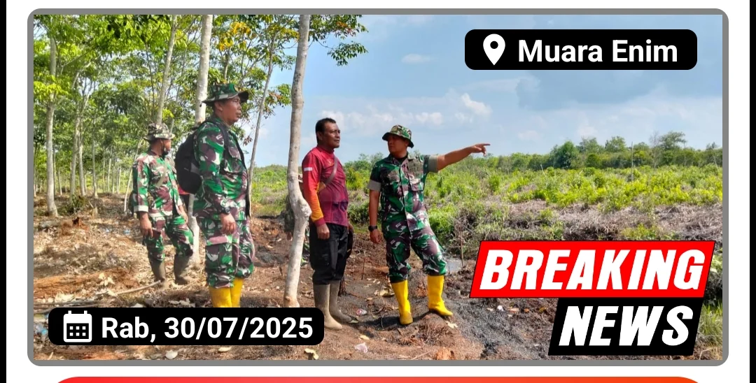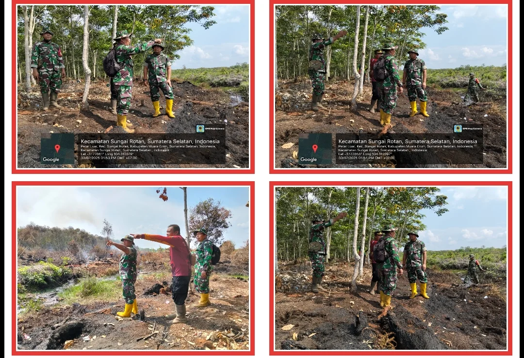 Kodam II Sriwijaya ~ Muara Enim ~ Sungai Rotan – Dalam rangka memantau perkembangan kebakaran hutan dan lahan (karhutla) di wilayah Kabupaten Muara Enim, Dandim 0404/Muara Enim Letkol Arm Tri Budi Wijaya,.S.H, melakukan peninjauan langsung ke lokasi yang terdampak di Desa Sukajadi Kecamatan Sungai Rotan Kabupaten Muara Enim Pada Rabu (30/07/2025)