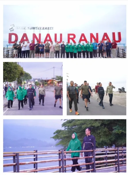 Oku Selatan, Tipikorinvestigasi.id –Pangdam II/Sriwijaya, Mayjen TNI Ujang Darwis, M.D.A., didampingi Ketua Persit KCK Daerah II/Sriwijaya beserta rombongan, melaksanakan kegiatan olahraga jalan santai menyusuri keindahan Danau Ranau, Kabupaten OKU Selatan, pada Selasa (28/04/2026)._