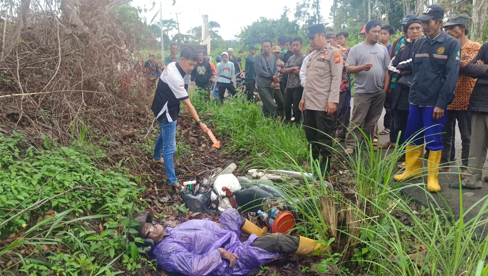 AKP Rahman Edi S.H., melalui Kanit Reserse Aipda Andi M Arif, membenarkan kejadian tersebut. “Korban mengendarai sepeda motor Honda Supra dengan nomor pelat yang belum diketahui, melaju dari arah barat ke timur. Diduga karena kondisi cuaca yang kurang baik, korban terperosok ke tepi jalan, kehilangan kendali, dan akhirnya terjatuh,” ujarnya saat dikonfirmasi.