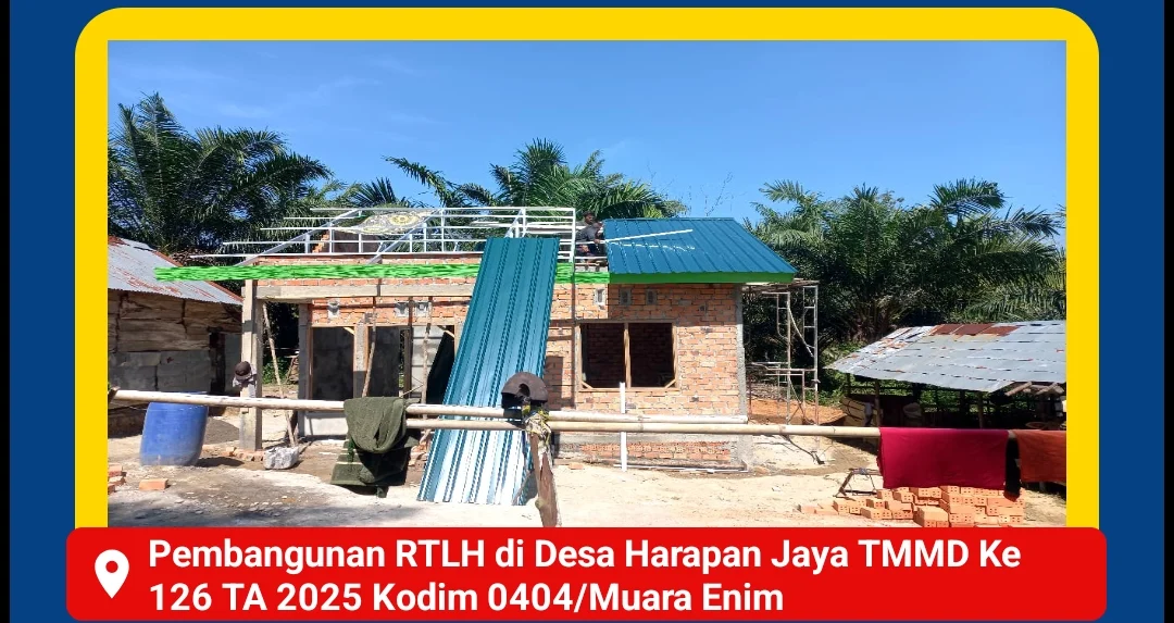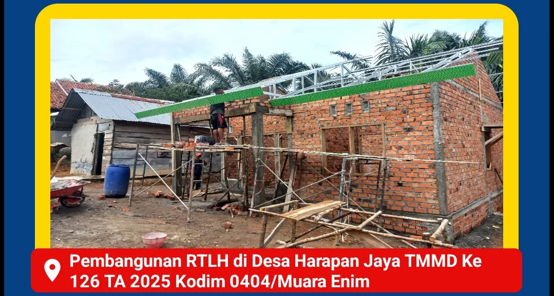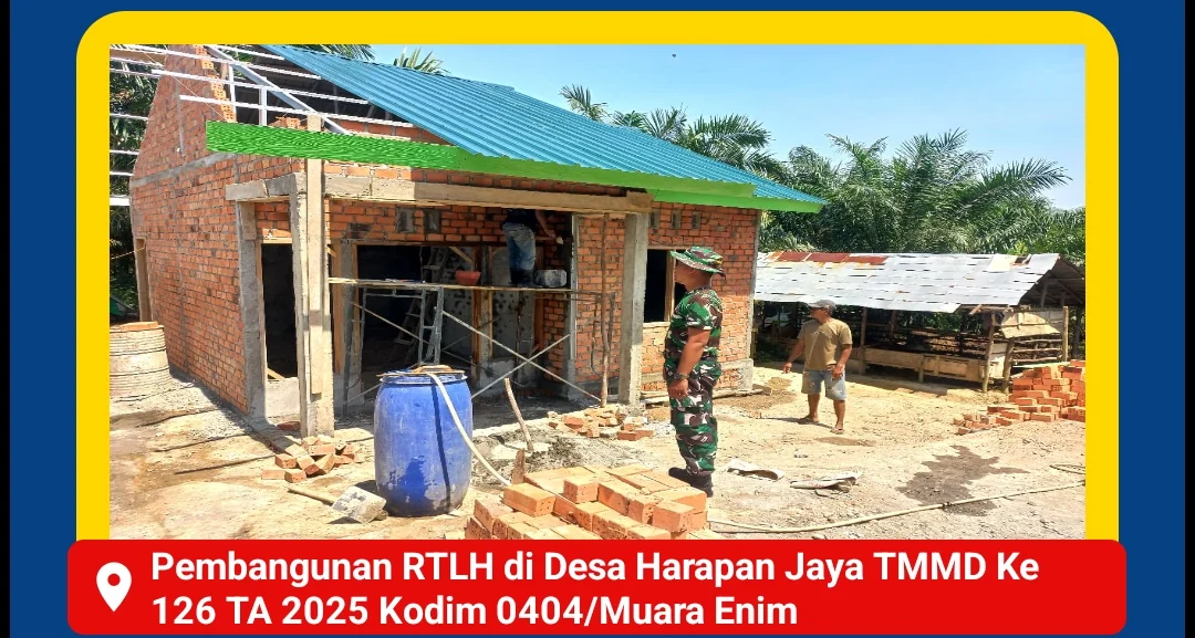 Muara Enim, Tipikorinvestigasi.id – Program bedah rumah tidak layak huni (RTLH) dalam rangkaian kegiatan Tentara Manunggal Membangun Desa (TMMD) ke-126 tahun anggaran 2025 yang dilaksanakan oleh Kodim 0404/Muara Enim terus dikebut. Salah satu rumah yang menjadi prioritas dalam program ini adalah milik Ibu Hasni, warga Desa Harapan Jaya.