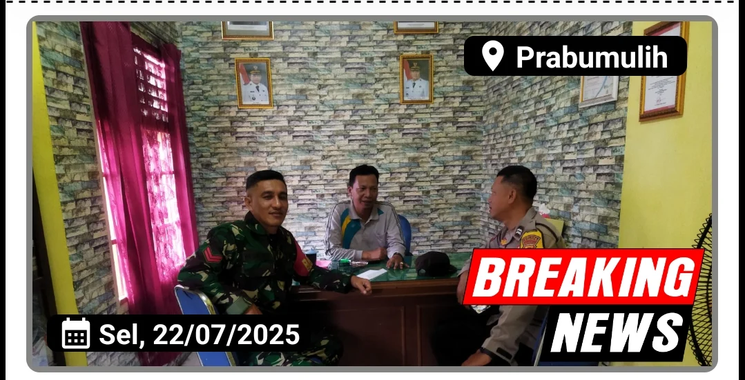 Hal tersebut ditegaskan Babinsa Koramil 404-02/Prabumulih Jajaran Kodim 0404/Muara Enim Kopti Hasan Basri bersama Bhabinkamtibmas Polsek RKT saat melaksanakan Komsos Bersama Perangkat Kelurahan di Wilayah binaan Kelurahan Tanjung Rambang Kecamatan RKT Kota Prabumulih Pada Selasa (22/07/2025)