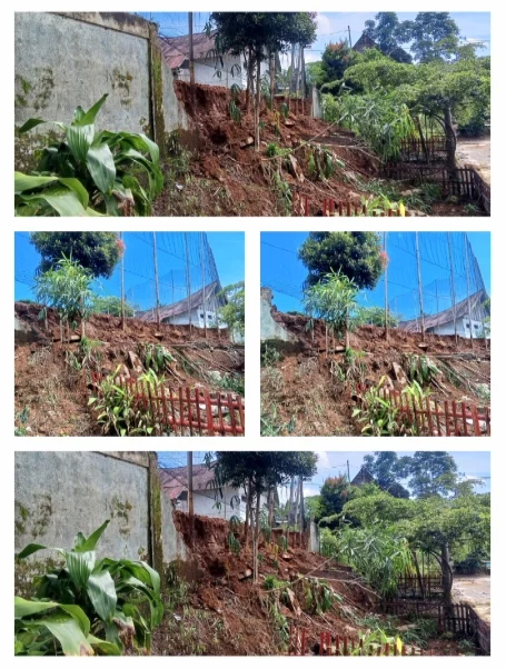 Pagar Kantor Desa Tanjung Agung Longsor Akibat Hujan Deras