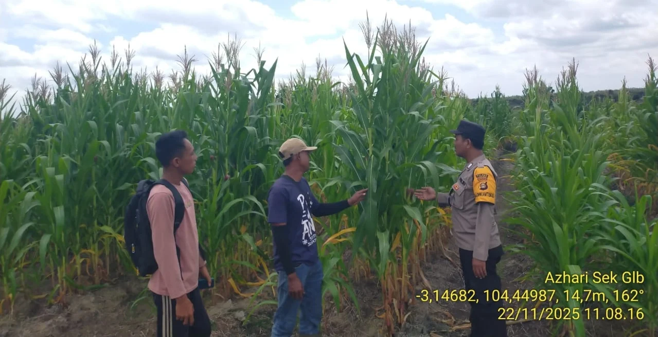 Muara Enim , Tipikorinvestigasi.id – Polsek Gelumbang kembali menunjukkan keseriusanny dalam mendukung program ketahanan pangan nasional melalui pemantauan langsung terhadap perkembangan tanaman jagung di lahan PT SEAL, Desa Gumai, Kecamatan Gelumbang, Kabupaten Muara Enim, Sabtu, (22/11/25). Bhabinkamtibmas Polsek Gelumbang, BRIPKA Azhari. Upaya ini merupakan langkah berkelanjutan untuk memastikan optimalnya hasil panen sekaligus mendorong pemanfaatan lahan produktif di wilayah hukum Polsek Gelumbang.
