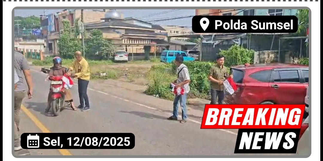 Palembang, Tipikor investigasi.id – Polda Sumsel membagikan ribuan bendera Merah Putih kepada masyarakat di Kota Palembang dan melakukan pemasangan bendera Merah Putih di berbagai tempat, seperti kantor polisi, sekolah, dan fasilitas umum lainnya. pada Selasa, 12 Agustus 2025, dalam rangka menyambut Hari Ulang Tahun (HUT) ke-80 Kemerdekaan Republik Indonesia. Pada Selasa (12/08/2025).