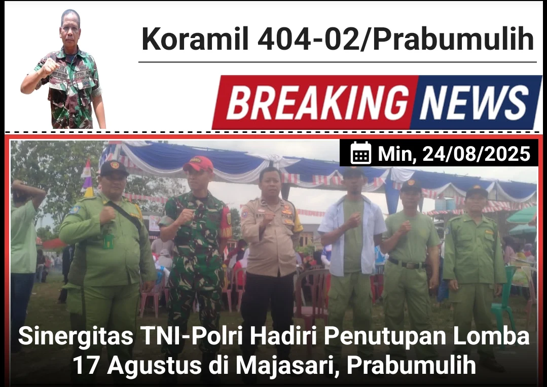 Kodam II Sriwijaya – Prabumulih – Majasari -, Semangat kemerdekaan masih terasa di Kelurahan Majasari, Prabumulih, dengan digelarnya acara penutupan lomba peringatan HUT ke-80 Republik Indonesia, pada 24 Agustus 2025. Acara ini menjadi ajang silaturahmi warga dan memperlihatkan sinergitas yang solid antara TNI dan Polri. Bertempat di Lapangan Kelurahan Majasari Kecamatan Prabumulih Selatan Kota Prabumulih Pada Minggu (24/08/2025).