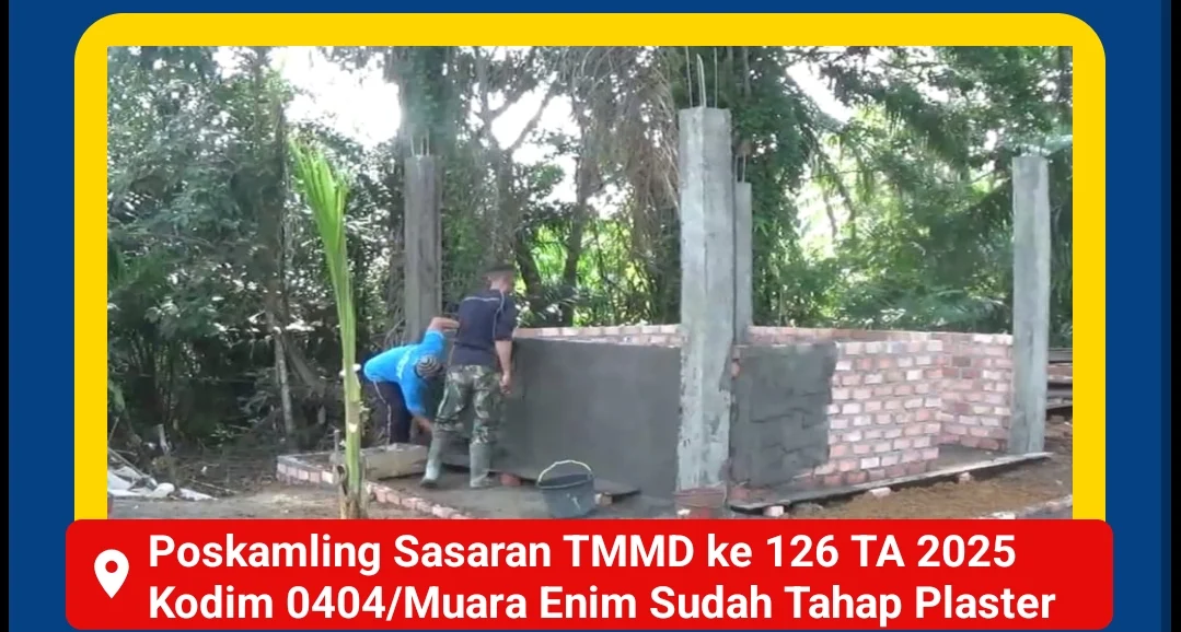 Muara Enim , Tipikorinvestigasi.id – Program TMMD ke-126 TA 2025 Kodim 0404/Muara Enim terus menunjukkan komitmennya dalam menciptakan lingkungan yang aman dan kondusif bagi masyarakat. Salah satu wujudnya adalah pembangunan Pos Kamling yang representatif di tiga desa sekaligus: Harapan Jaya, Muara Harapan, dan Saka Jaya, Kecamatan Muara Enim. Saat ini, pembangunan Pos Kamling telah mencapai tahap plester, menandakan semakin dekatnya fasilitas ini untuk segera dimanfaatkan oleh warga.