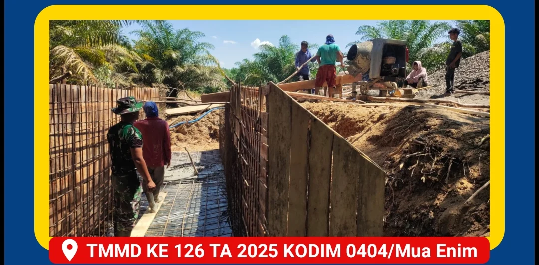 Muara Enim, Tipikorinvestigas.id – Program TNI Manunggal Membangun Desa (TMMD) ke-126 TA 2025 Kodim 0404/Muara Enim memfokuskan pembangunan pada plat duiker sebagai sarana penghubung antar desa, dengan harapan dapat mendongkrak perekonomian masyarakat di tiga desa.