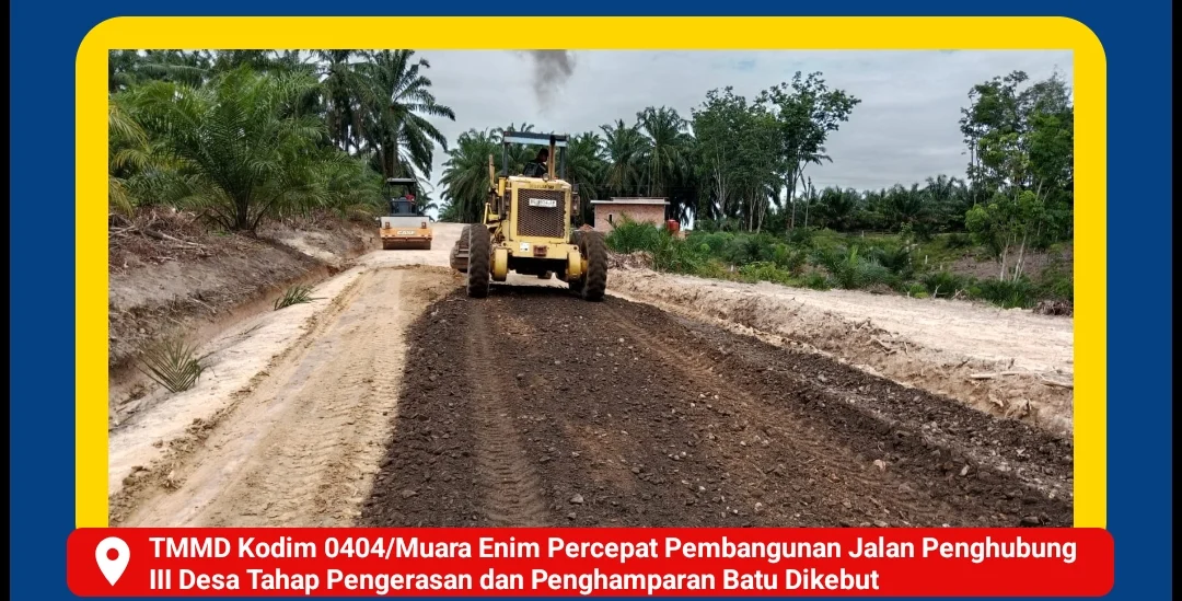 MUARA ENIM – Program TNI Manunggal Membangun Desa (TMMD) ke-126 TA 2025 Kodim 0404/Muara Enim terus memacu pembangunan jalan penghubung tiga desa di Kabupaten Muara Enim. Saat ini, proyek tersebut memasuki tahap pengerasan dan penghamparan batu (25/10/2025).